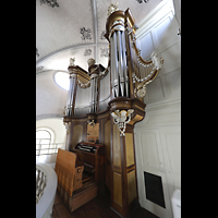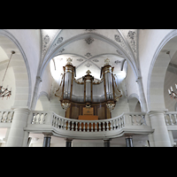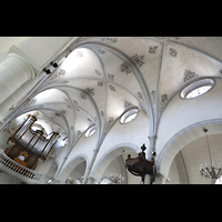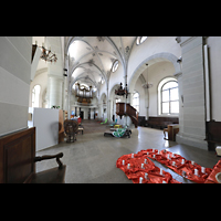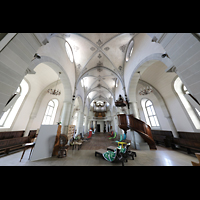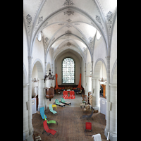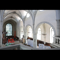 Seitlicher Blick von der Orgelempore in die Kirche |