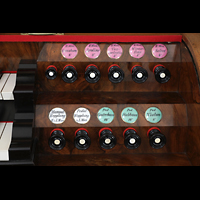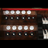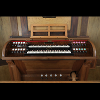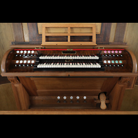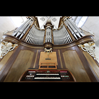 Blick vom Spieltisch auf die Orgel zur Decke |