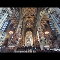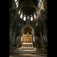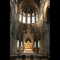 Blick vom Hauptaltar zur Orgel und in die Kirche |
