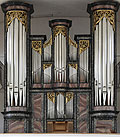 Orgelgehäuse schräg von hinten mit Blick in die Kirche