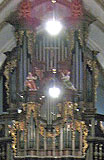 3 Manuale, 47 Ranks, 40 Register 1935 erbaut im Barockgehäuse (Mitte 18. Jh.) von Rieger-Kloss (CZ, Krnov) 2002 Generalüberholung durch Wolfgang Eisenbarth (D, Passau), Kánský-Brachtl und Jan Otcovský Kegelladen mit pneumatischer Traktur - keine Schweller, Tremulante, Koppeln angegeben |