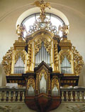 3 Manuale, 59 Ranks, 50 Register 1911 erbaut von Emanuel Štepán Petr (CZ, Praha) 2013 Renovierung (Umbau?) durch Kánský-Brachtl (CZ, Krnov) Kegelladen mit mechanischer Spieltraktur und mechanisch-elektrischer Registertraktur (Doppeltraktur) mit Setzerkombinationen Offiziell 50 Register - gezählt: 51. Eine dringende Tr.-Vermutung im Pedal |