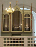 2 Manuale, 14 Ranks, 14 Register 1897 erbaut von A. H. Busch für die Bethesda Kirke (Indre Mission), København (Kopenhagen) 2015 in Kopenhagen abgebaut 2020 Wiederaufbau in Stege nach Restaurierung durch Frobenius Die Kirche verfügt außerdem über eine separate Hauptorgel im Transept mit 34 Ranks / 25 Registern auf 3 Manualen (Andersen 1966) |
