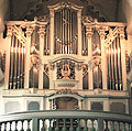 2 Manuale, 39 Ranks, 26 Register, 1.841 Pfeifen 1988-1991 Orgelneubau im alten Barockgehäuse durch Gerhard Böhm (D, Gotha) Vorgängerorgel: 1742-1743 erbaut mit wahrscheinlich 28 Registern nach Plänen J.S. Bachs von Heinrich Nicolaus Trebs (D, Weimar) 1839 Reparaturen und Dispositionsänderungen durch Schulze (D, Paulinzella) 18?8 Restaurierung durch Poppe (D, Stadtroda) - dabei Reduzierung auf 18 Register im 1. Weltkrieg Zwangsabgabe der Zinnpfeifen und Ersatz durch Zinkpfeifen 1922-1923 Umbau auf Pneumatik und grundlegende Änderung der Disposition durch Böttcher (D, Weimar) in den 1950-er und 1960-er Jahren neobarocker Umbau durch Kirchner (D, Weimar) 1988 Abriss der alten Orgel |