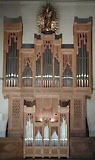 3 Manuale, 57 Ranks, 41 Register 1905 erbaut mit 43 Registern auf 3 Manualen von Voit (D, Durlach) 1928 Erweiterung um 8 neobarocke Register durch Voit 1953-1954 durchgreifender Umbau und Erweiterung (Fernorgel) auf 56 Register auf 4 Manualen nach Plänen von Dr. Walter Supper durch Carl Hess (D, Durlach) - hierbei wurden 60% der Voit-Pfeifen eingeschmolzen 1979 Sanierung der Fernorgel durch ? 1988-1990 technischer Neubau der Hauptorgel unter Wiederverwendung einiger Voit- und Hess-Register (markiert) durch Johannes Rohlf (D, Neubulach) 2006 Umintonation ("Abmilderung") durch ? 2009 Anschluss der Fernorgel von 1954 an die Hauptorgel und Einbau einer MIDI-Schnittstelle durch ? Vorgängerorgel um 1550 erste Orgel 1689 Zerstörung im großen Stadtbrand 1753 Neubau einer Haupt- und einer Chororgel von Johann Andreas Silbermann (heute F, Strasbourg) 1797 Einbau der noch fehlenden Zungen durch Georg Hladky (D, Baden-Baden) im 19. Jh.mehrfacher Umbau durch Voit, schließlich 1904 Verkauf an die St. Cyriakus-Kirche in karlsruhe |