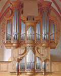 2 Manuale, 32 Ranks, 27 Register, 1.509 Pfeifen 1752-1756 erbaut von Johann Philipp und Johann Heinrich Stumm (D, Sulzbach) - erhaltene Register mit "S" markiert 1899 Umbau und romantisierende Änderung der Disposition durch Heinrich Bechstein (D, Groß-Umstadt), dabei gingen einige Register verloren; dennoch sind noch etwa 3/4 des originalen Pfeifenbestands bis heute erhalten 1976-1977 Restaurierung mit Wiederherstellung der Original-Disposition durch Gebr. Oberlinger (D, Windesheim), dabei Erweiterung des Manual- und Pedalumfangs. Rekonstruierte Register mit "O" markiert 2014-2015 Reinigung und Restaurierung durch Förster & Nikolaus (D, Lich) Schleifladen, mechanische Spieltraktur, mechanische Registertraktur, gleichstufige Stimmung, a' = 447,8 Hz |