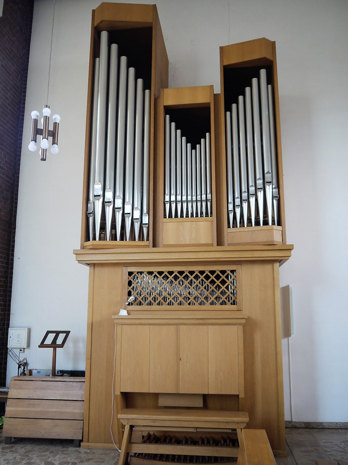 I. Hauptwerk | C-g''' | 10 (7) | II. Brustwerk | C-g''' | 6 (6) | Pedal | C-f' | 3 (3) | ||||||||
