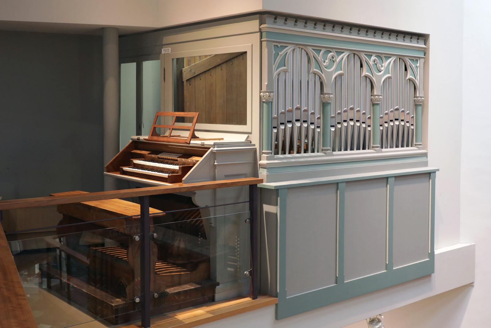Berlin (Tiergarten), Musikinstrumenten-Museum - Marcussen-Orgel, Gray-Orgel mit Spieltisch seitlich
