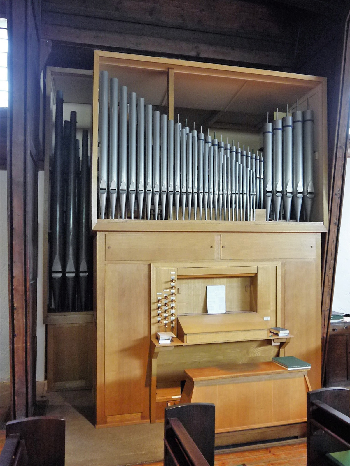 I. Hauptwerk | C-g''' | 8 (5) | II. Schwellerk | C-g''' | 12 (7) | Pedal | C-f' | 4 (4) | ||||||||