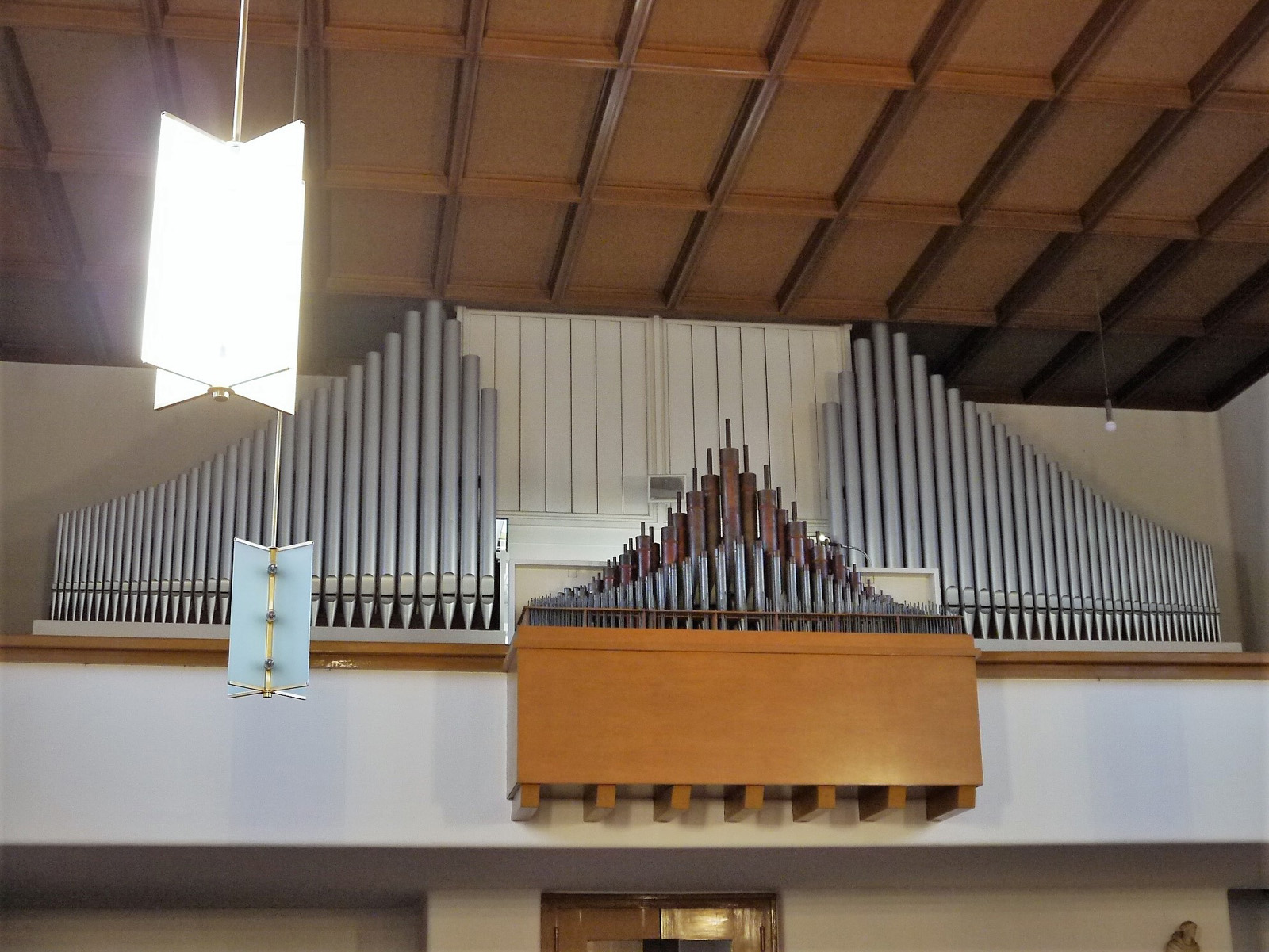I. Hauptwerk | C-g''' | 9 (6) | II. Schwellwerk | C-g''' | 10 (8) | III. Rückpositiv | C-g''' | 7 (5) | Pedal | C-f' | 6 (6) | |||||||||||