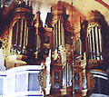 3 Manuale, 48 Ranks, 32 Register vor / um 1630 erbaut von ? 1710-1711 weitgehender Neubau unter Wiederverwendung einiger alter Register von 1630 (mit * markiert) durch Gerhard v. Holy 1997-1998 restauriert / teilweise rekonstruiert durch Jürgen Ahrend (D, Leer) - neue rekonstruierte Register mit ** markiert + Tremulant (für das ganze Werk?) |
