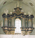 2 Manuale, 37 Ranks, 25 Register 1975 Neubau nach Disposition von Dr. Hans Böhringer durch Köberle (D, Schwäbisch Gmünd) Vorgängerorgeln: 1714 erste Orgel (?) von Johann Georg Allgeyer 1747 Umbau und Tieferstimmung durch Joseph Allgeyer 1885 Einbau eines neuen zweimanualigen Werks in das alte Gehäuse durch die Firma Weigle (D, Echterdingen) 1948 Generalüberholung der Orgel durch Willi Sattler. Dabei Austausch der großen Balgtretanlage durch ein Elektrogebläse. 1952 Die Orgel wird unter Denkmalschutz gestellt 1960 Reinigung und Erneuerung einzelner Register durch ? 1971 Feststellung des staub- und schmutzbedingten Endes der Originalorgel und Entschluss zum Neubau |