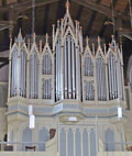 3 Manuale, 55 Ranks, 43 Register (+ 2 Ext. + 1 Tr.), 3.631 Pfeifen 1873-1875 entworfen und Beginn des Baus durch Carl Böttcher (D, Magdeburg) - während des Orgelbaus ging die Firma Böttcher in Konkurs 1877-1878 Fertigstellung durch August Troch (D, Neuhaldensleben) - Gehäuse und Prospekt von Wilhelm Sauer (D, Frankfurt/Oder) 1917 Zwangsabgabe der Prospektpfeifen zu Kriegszwecken, später Ersatz durch Zinkpfeifen 1935-1936 gravierender Umbau (Dispositionsänderung, Pneumatisierung, Taschenladen statt Schleifladen, ...) mit geringem Budget durch Eduard Hülle (D, Halberstadt) 1991-1997 notdürftige Reparaturen durch A. Schuke (D, Werder b. Potsdam) Die Orgel wurde immer störanfälliger und das Budget reichte bis dato nicht, um eine grundlegene Instandsetzung zu machen 2023-2024 Restaurierung der noch vorhandenen Ursprungaregister, ansonsten technischer Neubau mit ergänzenden Registern im Stil des späten 19. Jh. (Erbauerzeit) durch Eule (D, Bautzen) Ganz oder teilweise erhaltene Register mit * markiert - außerdem werden drei original erhaltene Doppelfaltenmagazinbälge restauriert und wiederverwendet Kegelladen mit mechanischer Spiel- und Registertraktur mit Barkermaschinen, Crescendowalze, 1 freie Kombination und 5 feste Kombinationen (additiv): mf, f, Tutti, Rohrwerke |