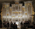 3 Manuale, 62 Ranks, 48 Register (+ 4 Ext.), 2.930 Pfeifen 2019 erbaut auf der Westempore von Manufacture d’Orgues Thomas (B, Stavelot) + Cymbelstern (ohne Werkzuordnung). Mechanische Spiel- und Registertraktur, Stimmung: Wohltemperiert Le Divellec nach Neidhard I, a' = 440 Hz bei 16°C Die Orgel wird auch von der Musikhochschule genutzt (und wurde größtenteils auch von ihr bezahlt) Die Kirche verfügt außerdem über eine separate Spanische Orgel auf der Nordempore mit 24 Ranks / 16 Registern auf 1 Manual und Pedal (Collon 2001) Vorgängerorgeln: 1575 erste Orgel in der Vorgängerkirche von Chistoff Kahren 1702 Bau einer neuen Orgel in der neuen Kirche durch Hermann Willenbrock 1719 größere Reparatur durch Christian Vater (D, Hannover) 1857-1858 Orgelneubau im barocken Gehäuse mit 44 Registern auf 3 Manualen durch Carl Wilhelm und Eduard Meyer Zerstörung der Orgel im 2. Weltkrieg 1963 nach dem Wiederaufbau der Kirche Beu einer neuen Orgel auf der Westempore mit 58 Ranks / 38 Registern von Detlef Kleuker (D, Bielefeld-Brackwede) 2010 Verkauf der inzwischen unspielbar gewordenen Orgel an die Ichthuskerk in Urk (Niederlande) und dort Aufbau in stark veränderter Form |