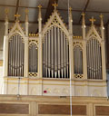 2 Manuale, 31 Ranks, 24 Register 1969-1870 erbaut von Conrad Geißler (D, Eilenburg) nach 1945 neobarocke Umdisponierung des Oberwerks durch ? 1986-87 Generalüberholung und Rekonstruktion einiger Register sowie der Pedalkoppel II-P durch Hermann Eule (D, Bautzen) Schleifladen mit mechanischer Spiel- und Registertraktur |
