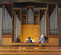 2 Manuale, 28 Ranks, 20 Register (+ 79 digitale Reg.) 1972 erbaut von Hillebrandt (D, Hannover) 2008-2010 Einbau von MIDI (anschlagsdynamisch) im Schwellwerk und Pedal mit Erweiterung um digitale Soundmodule (Ahlborn) und einem digitalen Fernwerk in der Apsis 2011-2014 Erweiterung um weitere digitale Werke (Ahlborn-Module) und Lautsprecher durch Christoph Klug 2016 Generalüberholung durch Christoph Grefe (D, Ilsede) Mechanische Spieltraktur, elektrische Registertraktur mit 4 freien Kombinationen |