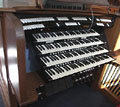 4 Manuale, 51 Ranks, 45 Register (+ 5 Ext. + 2 Tr. + 1 Sonst.) 1930 erbaut für die First Presbyterian Church in Passaic (New Jersey / USA) von E.M. Skinner (USA, Boston) 1952 Erweiterung um eine Antiphonal-Orgel durch Aeolian-Skinner 1972 neuer Spieltisch von Austin (USA, Hartford) 2008 stand die Orgel zum Verkauf, da der Platz in der neu erbauten FPC in Passaic nicht ausreichte. Die Kirchengemeinde Ingelheim kaufte die Orgel für 50.000$ 2013-2014 Installation in der Saalkirche und Bau eines fahrbaren Generalspieltischs, von dem aus auch die Antiphonal-Orgel spielbar sein wird, durch Klais Anfang 2014 wurde die Hauptorgel eingeweiht - der Abschluss der Arbeiten inkl. Anschluss der Antiphonal-Orgel steht noch aus (dann 52 klingende Register, 18 kombinierte Register, 49 Transmissionen und 5.237 Pfeifen Die Kirche verfügt über eine separate Dreymann-Orgel im rechten Querhaus mit 27 Ranks / 20 Registern auf 2 Manualen (Dreymann, 1853) sowie ein Chorpositiv mit 5 Ranks / 4 Registern (Förster & Nicloaus) |