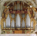 3 Manuale, 46 Ranks, 32 Register 1976 erbaut im Gehäuse von 1745 unter Wiederverwendung weniger alter Pfeifen durch Hans Karl (D, Aichstetten) 1984 Generalüberholung und Umstellung einiger Register durch Eddy Ottes (D, Bad Wurzach) Vorgängerorgeln: 1714 erste Orgel mit 12 Registern von Ochsenreuther (D, Weiler) 1730 und 1735 Anschaffung zweier Chororgeln 1745 Neubau einer Hauptorgel mit 24 Registern durch Michael Bihler (D, Konstanz) - der Prospekt ist bis heute erhalten 1903 Einbau eines neuen Werks mit ebenfalls 24 Registern in das alte Gehäuse durch Späth (D, Ennetach) 1947 Generalüberholung durch Späth |