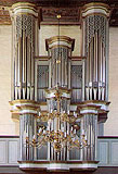2 Manuale, 41 Ranks, 29 Register 1966 erbaut an der Südseite des Chores von Rudolf von Beckerath (D, Hamburg) 1991 Umsetzung auf die bei der Kircherenovierung neu gestaltete Westempore, neue mechanische Traktur und Erweiterung um 2 Pedalregister durch Hinrich Otto Paschen (D, Kiel) dabei Neugestaltung des Gehäuses in Anlehnung an die ursprüngliche Stellwagen-Orgel von 1642 |