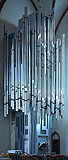 Mainz, St. Stephan, Orgel seitlich im Licht der blauen Chagall-Fenster