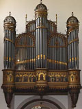 2 Manuale, 26 Ranks, 22 Register 1833 Orgelneubau durch Johann Kersting (D, Münster) 1882 weitgehender Neubau unter Wiederverwendung einiger Kersting-Register durch Friedrich Fleiter (D, Münster) 1955 Umbau einiger Register, Austausch des I. und II. Manuals sowie Erweiterung des Pedalumfangs durch Franz Breil (D, Dorsten) 2002 Restaurierung auf den Dispositions-Zustand von 1882 durch Seifert (D, Kevelaer) - rekonstruierte Register mit * gekennzeichnet 2022 Teilrestaurierung (insbes. Schimmelbeseitigung und Windverbesserung) durch Weimbs (D, Hellenthal) + Tremulant (auf beide Manuale wirkend) Vorgängerorgeln: 1578 Ankauf einer Orgel aus einer reformierten Kirche aus den Niederlanden 1664-1667 zbd 1687 Umbau durch J.H. Reinking & Söhne |
