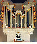 2 Manuale, 25 Ranks, 21 Register 1779 erbaut für das Franziskanerhospiz Öffingen von Joseph Martin (D, Hayingen) 1810 umgesetzt nach Neuhausen 1822 Restaurierung und Reparatur durch Gebr. Stiefell (D, Rastatt) 1877 Umbau (man müsste eher "Zerstörung" schreiben) durch Primus Heim 1902 grundlegende Reparatur durch Anton Kiene (D, Waldkirch) 1982 Abbau wegen Kirchenrenovierung 1988 Restaurierung (da nur noch 150 alte Pfeifenrehalten waren eher ein historisierender Neubau) durch Link (D, Giengen / Brenz) + Kanaltremulant für das ganze Werk |