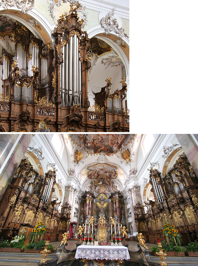 Blick ins Vierungsgewölbe und auf die Riepp-Orgeln (Dreifaltigkeit re, Heilig-Geist li) Photo: © Martin Doering