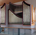 3 Manuale, 58 Ranks, 44 Register (+ 1 Ext.), ca. 3.500 Pfeifen 1956 erbaut für St. Nikolia in Berlin-Spandau von Kemper (D, Lübeck) 1970 Umbau und Neugestaltung des Prospekts durch Kemper 1995-1996 Umsetzung nach Peitz durch ehrenamtliche Helfer, dabei räumliche Trennung des ehem. Rückpositivs als Fernwerk und Einbau einer Spanischen Trompete 1996-2006 Austausch von 7 Registern durch romantische, u.a. aus Bergen (N), Helsinki (FIN), Rostock und der Schweiz + Einbau eines Glockenspiels von ca. 1920 aus den USA (ehrenamtlich!) 2010 Bau eines zweiten Spieltischs im Altarraum durch ehrenamtliche Helfer 2011 Austausch des Pommers 16' durch einen Bordun 16', neue Schallbecher für diie Spanische Trompete und farbliche Neufassung des Orgelgehäuses Im Pedal eine dringende Ext.-Vermutung (Windabschwächung) - bei offiziell 44 Registern muss eine Ext./Tr. vorhanden sein |