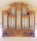 3 Manuale, 49 Ranks, 38 Register 1825-1829 erbaut von den Gebrüdern Stiefell 1868 Romantisierung, d.h. Ersatz der Mixturen durch Grundstimmen und neue Laden durch Louis Voit (D, Durlach) 1958 Beginn der geplanten Erweiterung auf 46 Register und Elektrifizierung der Traktur durch Dold (D, Freiburg) 1960-1964 Beendigung der Arbeiten durch Walcker (D, Ludwigsburg) - jedoch wurde nur das Registrierwerk elektrifiziert 1978 Generalsanierung durch Peter Vier (D, Oberweier) 1989-1994 Restaurierung durch Georg Jann (D, Laberweinting) |