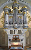 2 Manuale, 26 Ranks, 20 Register 1991 im barocken Prospekt von 1787-89 (aus einer anderen Orgel - genaue Herkunft unklar) erbaut von Claudius Winterhalter (D, ) + Kanaltremulant für HW und BW gemeinsam Die Kirche verfügt außerdem über eine separate Hauptorgel mit ca. 39 Ranks / 33 Registern auf 2 Manualen (Metzler, 2007) |