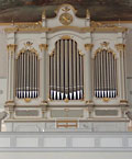 2 Manuale, 42 Ranks, 33 Register, 1.926 Pfeifen 1897 erbaut von E.F. Steinmeyer (D, Oettingen) keine Angaben über zwischenzeitliche Umbauten - es muss welche gegeben haben, denn nur 2/3 der Originalpfeifen waren 2009 noch erhalten 2009-2011 Restaurierung mit Rekonstruktion der urspürnglichen Dipsosition, Erweiterung des Manualumfangs von f''' auf g''' sowie des Pedalumfangs von d''' auf f''' und neuer Spieltisch durch S. Schmid (D, Knottenried) Kegelladen, Setzeranlage, 5 feste Kombinationen (pp, p, mf, f, ff) - komplett oder weitestgehend rekonstruierte Register mit ' markiert |