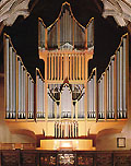 4 Manuale, 121 Ranks, 80 Register (+ 2 Tr.) 1966-1969 erbaut von Hans Eule (D, Bautzen) 1994 Umintonation (mehr Grundtönigkeit) durch Eule 2000-2001 Ersatz der pneumatischen durch eine elektrische Traktur und elektrische Koppeln durch A. Voigt (D, Bad Liebenwerda) 2008-2012 Erneuerung der Traktur, Elektrik und der Windladen, komplette Neukonzeption und Neuintonation sowie Erweiterung um 5 Register durch Christian Reinhold (D, Großolbersdorf) Schleifladen (Untersatz 32': kastenladen) mit mechanischer Spieltraktur (Pedal elektrisch) und elektrischer Registertraktur; elektrische Koppeln Vorgängerorgeln: 1383 erste Erwähnung einer Orgel 1480 neue Orgel von Nikolaus Hamicke (D, Merseburg) 1543 neue Orgel von Blasius Lehmann (D, Bautzen) 1612 neue Orgel von Joachim Zschugk (D, Plauen) 1842 neue Orgel von Carl Gottlieb Jehmlich (D, Dresden) 1876 Erweiterung durch Richard Kreutzbach 1890-1891 Erweiterung auf 75 Register durch Jehmlich (inkl. 2 Hochdruckregistern von Hill & Sons, GB, London) 1929-1930 Erweiterung auf 101 Register und damit zur größten Orgel Sachsens |