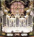 3 Manuale, 67 Ranks, 47 Register, 3.335 Pfeifen 1980 erbaut im z.T. rekonstruierten Gehäuse von 1758 durch Pirchner (A, Steinnach am Brenner) Kein Schweller (in Anlehnung an das Original von 1758) Vorgängerorgel: 1756-1758 erbaut von Franz Steinacher - die weitere Geschichte dieser Orgel ist nicht bekannt; nur das Glockenspiel im 3. Manual blieb erhalten. |