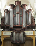 3 Manuale, 56 Ranks, 46 Register 1863 erbaut von Franciscus Cornelius Smits (da die Geldmittel nicht ausreichten, konnten einige geplante Register nicht eingebaut werden) 1882 Fertigstellung durch Smits Sohn 1941-1942 Umbau und Umdisponierung im neobarocken Stil durch Adema 1997 Abbau der Orgel und Einlagerung durch Vermeulen 2005-2006 grundlegende Restaurierung durch Flentrop (NL, Zaadam) und Elbertse (NL) |