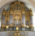 Stockholm, Maria Magdalena Kyrka (Hauptorgel), Südemporenorgel von der Seite