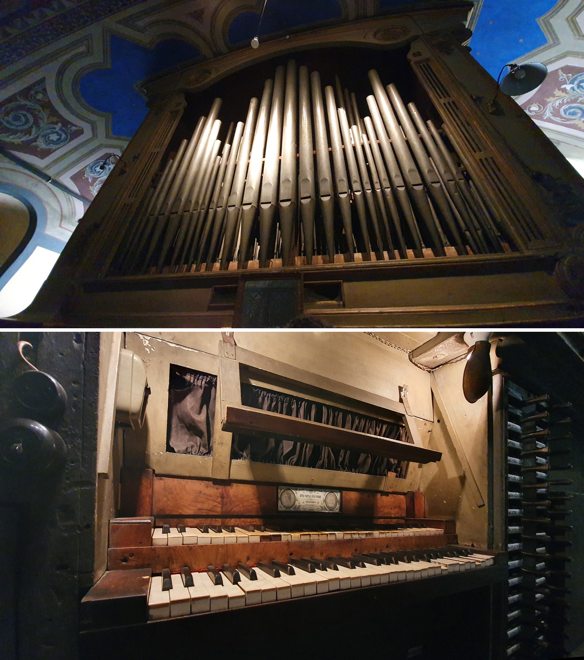 1859 erbaut von Fratelli Bossi (I) 1873 Reparatur nach einem Kirchenbrand durch einen Techniker von Bossi 1931 und 1951 Umbau / Renovierung durch Clemente Marchini 2004 Umbau / Renovierung durch Padre Giuseppe Gandolfo + Tremolo (für das ganze Werk) + diverse feste Kombinationen. Die Orgel benötigt eine komplette Restaurierung. Angebote laufen