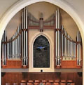 3 Manuale, 62 Ranks, 45 Register (+ 11 Ext. + 9 Tr. + 13 digitale Reg.), 3.630 Pfeifen 1950 erbaut von M.P. Möller 1976 Umbau und Erweiterung durch Möller 1994 Umbau, Ersatz vieler Register mit neuen Pfeifen und Erweiterung um digitale Walker-Register durch Daniel L. Angerstein Manualtausch I/II, Transposer, + Zimbelstern ohne Werkzuordnung |
