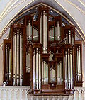 4 Manuale, 78 Ranks?, 57 Register? (+ 13 Ext.? + 5 Tr.? + 1 digitales Reg.) 2002 erbaut von Létourneau (CAN, St. Hyacinthe) Keine Ext. angegeben - angeblich hat die Hauptorgel 54 Ranks - das ist sicher zuwenig, denn ich habe bereits viele Ext. angenommen (mit ? gekennzeichnet) - Gesamtranks unsicher! Die Chororgel besitzt einen eigenen 2-manualigen Spieltisch Die Kathedrale besitzt außerdem eine separate Kapellenorgel mit 14 Ranks / 12 Registern auf 2 Manualen (Létourneau, 2002) |
