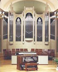 3 Manuale, 67 Ranks, 54 Register (+ 2 Ext. + 8 Tr. + 1 Sonst.), 3.598 Pfeifen 1959 erbaut mit 34 Ranks für eine inzwischen geschlossene Kirche in Toronto von Casavant (CAN, Saint-Hyacinthe) - Register mit "C" markiert 2022 Umbau, Erweiterung und Einbau in die Gloria Dei-Kirche durch Létourneau (CAN, Saint-Hyacinthe) Vorgängerorgel: 1962 erbaut von M.P. Möller (USA, Hagerstown) 1975 Erweiterung um eine Antiphonal-Division durch Möller - diese Division wurde renoviert wiederverwendet und die Trompette-en-Chamade ins Great umgesetzt Zunehmende technische Probleme und teure notwendige Reparaturen führten zur Entscheidung eines Neubaus |
