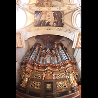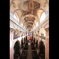 Blick von der Orgelempore / Spieltisch in die Basilika |