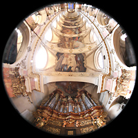 Blick vom Spieltisch über den Prospekt ins Gewölbe und zum Chor |