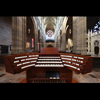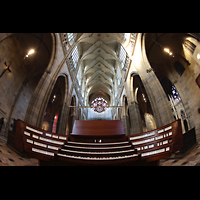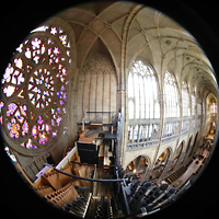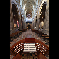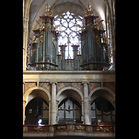 Blick auf Hauptwerk, Solowerke, Westwand-Rosette und in den Dom |