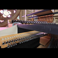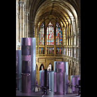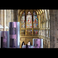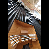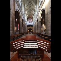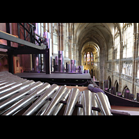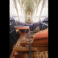 Hauptorgel, seitlicher Blick vom Spieltisch zum Chor und südlichen Langhaus |