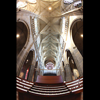 Blick vom Spieltisch über den Prospekt ins Gewölbe und ins Langhaus |
