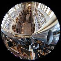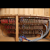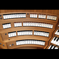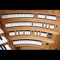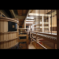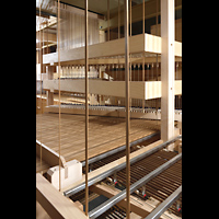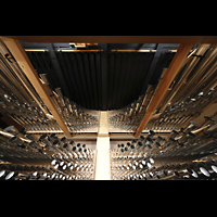 Seitlicher Blick auf Hauptwerk, Solo Cornet, Chamade, schwarz: Schwellkasten des Solo Hochdruckwerks |