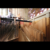 Seitlicher Blick auf Solowerke, Hauptwerk und Prospektpfeifen in den Dom |