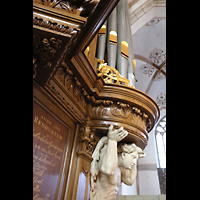 Rechter Pedalturm mit Engelsfigur und tragendem Atlanten |