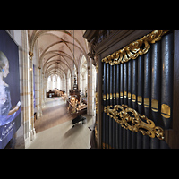 Blick vom südlichen Seitenschiff auf die Orgel und ins Hauptschiff |