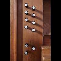 Linek Registerstaffel der temporär aufgestellten Flentrop-Orgel (2025) |
