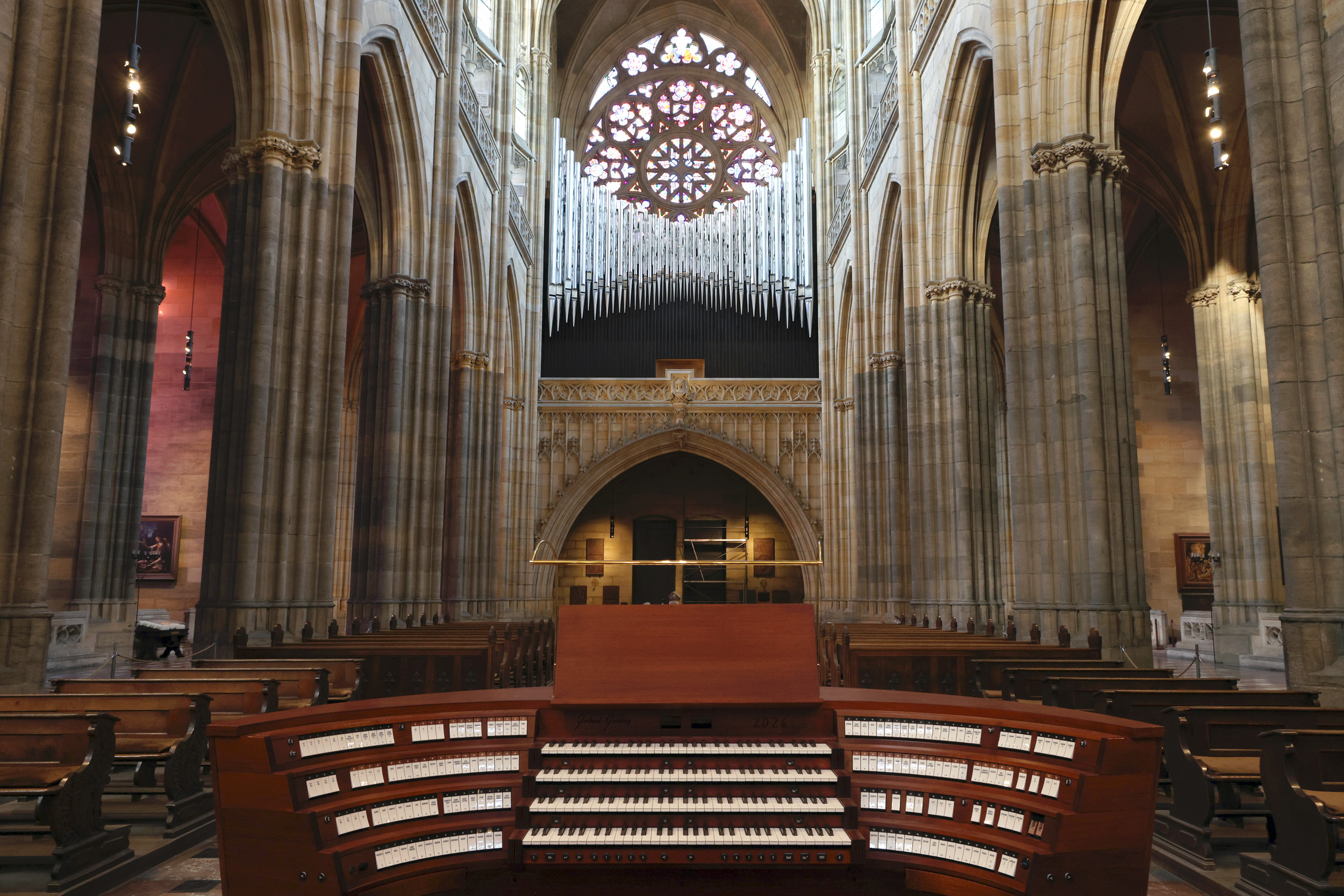 Seitlicher Blick zur Hauptorgel, links die Silberskulptur des hl. St. Adalbert Photo: © Martin Doering